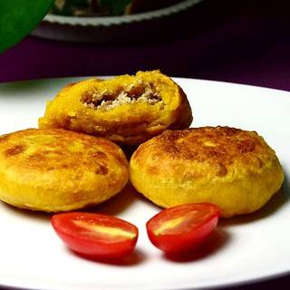 原料:软柿子、面粉、糯米粉、核桃仁、芝麻、熟面粉、白糖、食用油。