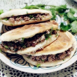 原料:肉、烤馍、香菜、卤料。