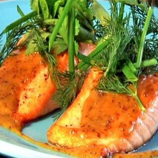 原料:三文鱼、黑胡椒粉、酱油、芥末酱、整粒芥末、橄榄油、蜂蜜、黄油。