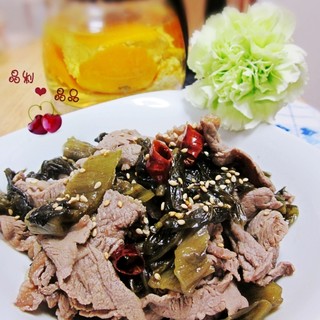 原料:牛肩肉片、泡酸菜、干辣椒、大蒜瓣、花椒、桂圆、生姜、白芝麻、盐、黑胡椒、橄榄油、淀粉、料酒。