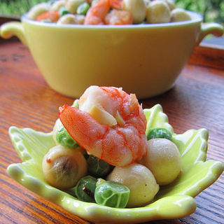 原料:虾仁、莲子米、青豆、姜葱末、生粉、料酒、油盐、胡椒粉。