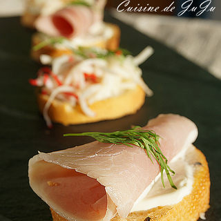 原料:法棍、蟹肉、火腿、柠檬、乳酪、葱末、洋葱碎、盐、胡椒、油。