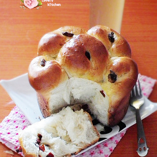 原料:高筋面粉、低筋面粉、奶粉、糖、鸡蛋、黄油、酵母、清水、圣女果 干、盐。