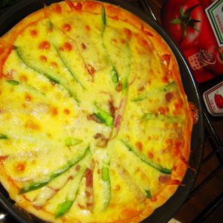 原料:火腿、洋葱、青椒、面团、马苏里拉芝士、亨氏番茄酱。