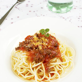 原料:意大利面、番茄、洋葱、肉馅、蒜末。