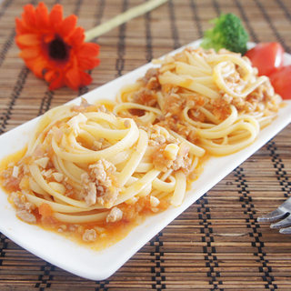 原料:意大利面、猪肉、洋葱、番茄酱、口蘑、橄榄油、蒜、盐、砂糖、料酒、水、奶酪粉。