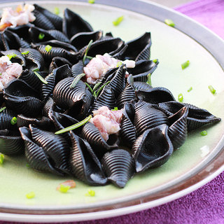 原料:墨鱼意面、濑尿虾、螺蛳、葱花、辣椒、老抽、黄酒、盐、糖、油。