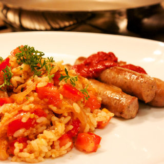 原料:白饭、意式手工香肠、洋葱、有机番茄、新鲜西芹、橄榄油、罗勒、芝士粉、海盐、番茄原酱。