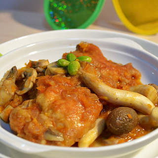 原料:小嫩鸡、胡萝卜、洋葱、鸿禧菇、口蘑。