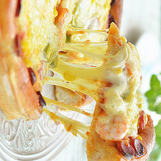 原料:高筋面粉、水、虾仁、玉米粒、香肠、青椒、马苏里拉芝士、批萨酱、橄榄油、盐、糖、橄榄油、酵母。
