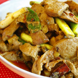 原料:猪肝、葱、蒜、干辣椒、姜、淀粉、豆豉酱、味精、盐、料酒。