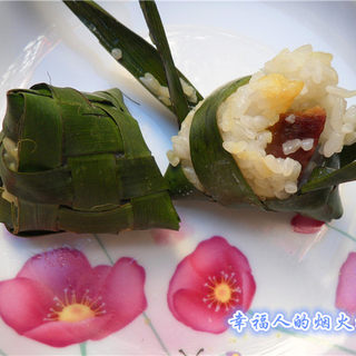 原料:棕叶、糯米、自制火腿、自制香肠、自制叉烧肉。