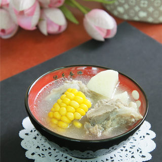 原料:排骨、鲜淮山、玉米、料酒、米醋、姜片、盐。