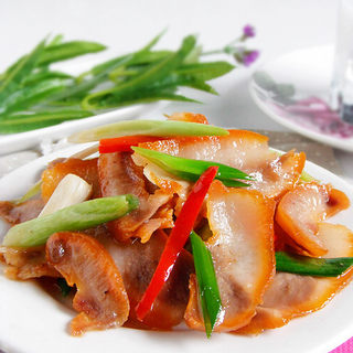 原料:猪头肉、青蒜、红椒、葱、蒜。