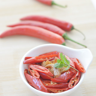 原料:猪腿肉、辣椒、调和油、料酒、蒸鱼鼓油、盐、味精。