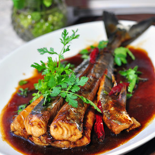 原料:新鲜鲅鱼、葱姜蒜、干红辣椒、香菜、水淀粉、食用油、料酒、红烧酱油、盐。