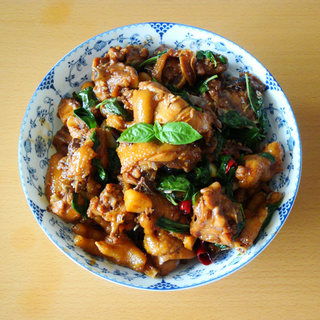 原料:土鸡、粉条、土豆、青灯笼椒、红灯笼椒、大蒜、生姜、葱、大料、八角、食盐、十三香、花椒、朝天椒、香叶。