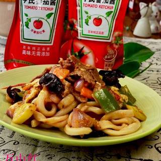 原料:羊肉、西红柿、亨氏番茄酱、面粉、时令蔬菜、生抽、盐、胡椒粉、孜然粉。