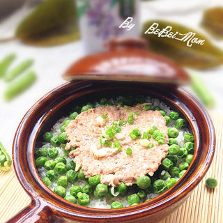 原料:新鲜豌豆、瘦肉、大米、姜、盐、米酒、酱油、花生油。