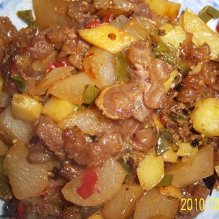 原料:牛鞭、萝卜、土豆、杭椒、葱姜蒜、八角、豆瓣、老抽、干红椒、椒麻油、盐、鸡精。