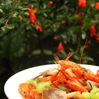原料:韭菜、冻虾仁、香茹、盐、料酒、淀粉。