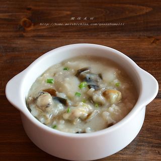 原料:新鲜牡蛎、皮蛋、大米、葱、姜、盐、白酒、白胡椒粉。