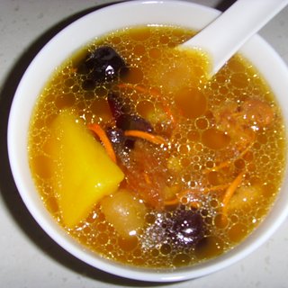 原料:鸭、虫草花、红枣、桂圆肉、鲜淮山、姜。