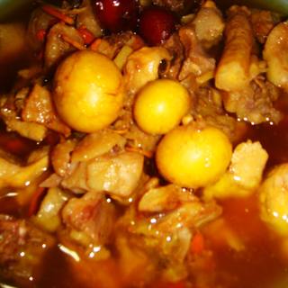原料:土母鸡、虫草花、黄芪、党参、莲子、红枣、圆肉、杞子。