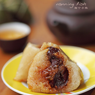 原料:猪梅子、干粽叶、鹌鹑蛋、熟板栗、江米。