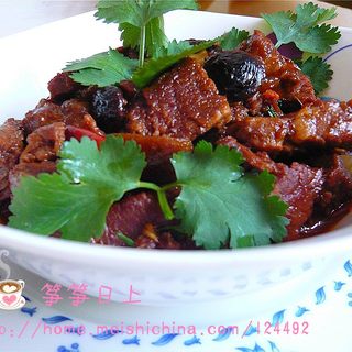 原料:牛腩、生姜、大蒜、香葱、八角、草果、花椒、干辣椒、陈皮、大葱、洋葱、香菇、老抽、盐、糖、鸡精 。