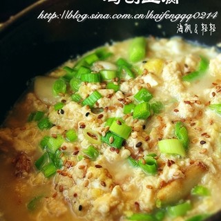 原料:豆腐、鸡蛋、史云生浓醇高汤、大蒜、芝麻、蒜苗。