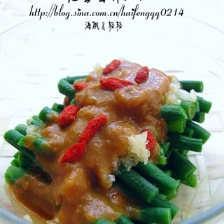 原料:豇豆、花生酱、大蒜、盐、白糖。