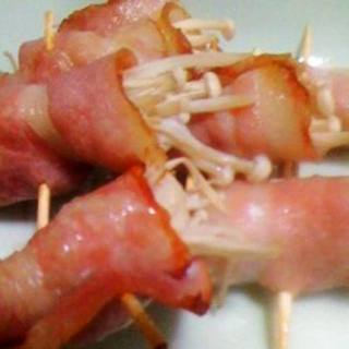 原料:金针菇、培根、孜然粒、黑胡椒。