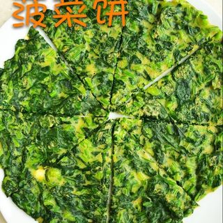 原料:菠菜、鸡蛋、面粉、盐、虾粉、食用油。
