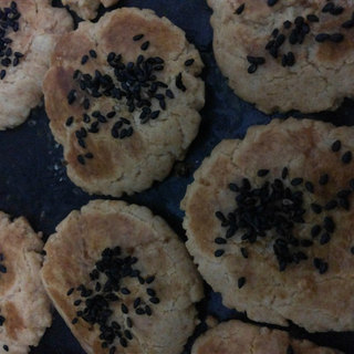 原料:面粉、花生酱、酵母、温水、黑芝麻、花椒面。