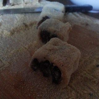 原料:糯米粉、油、水、豆沙馅、黄豆面。