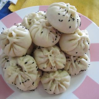 原料:糯米、肉糜、洋葱、火腿、木耳、青豆、香菇、面粉、盐、酱油、糖、十三香。
