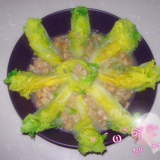 原料:白菜、猪肉馅、葱、蒜、盐、鸡精、白胡椒粉、酱油、醋、香油。