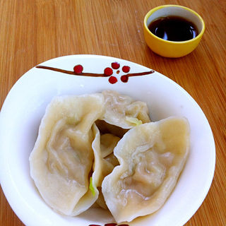 原料:猪肉、甘蓝、饺子皮、葱、蚝油、盐、鸡精、植物油。