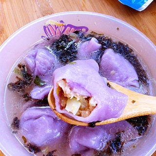 原料:紫甘蓝、普通面粉、调好的肉馅、紫菜料包。