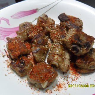 原料:排骨、料酒、酱油、老抽、盐、孜然、辣椒粉、白醋。