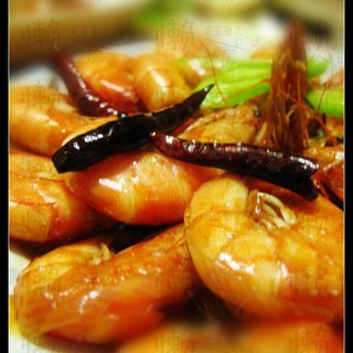 原料:虾、花椒、干辣椒、青辣椒、葱、姜、味达美。