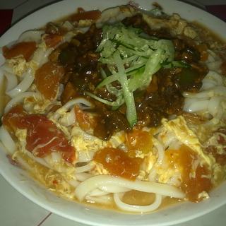 原料:切面、西红柿、鸡蛋、香菇、青椒、肉馅、黄瓜、葱、香菜。