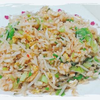原料:白米饭、小豆芽、生菜、鸡蛋、小葱、生抽、食用盐、辣椒粉、食用油、鸡精。