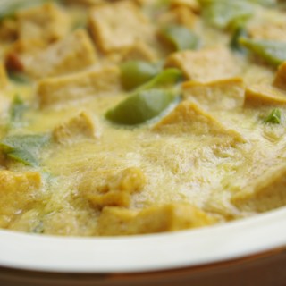 原料:豆腐、肉、柿子椒、鸡蛋。