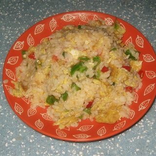 原料:剩米饭、西红柿、鸡蛋、椒、红泡椒、盐。