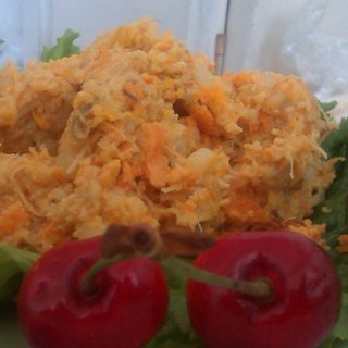 原料:胡萝卜、土豆、鸭蛋、姜丝、葱丝。