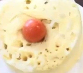 原料:白糖、松饼粉、鸡蛋、牛奶、苹果片、小西红柿、苹果丁、奶油。