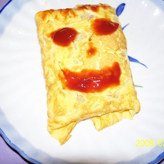原料:剩米饭、鸡蛋、胡萝卜、青椒、洋葱、油、盐、番茄酱、鸡精。
