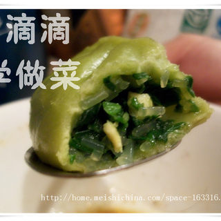 原料:青菜、盐、料酒、鸡精、猪肉糜、糖、姜粉、生抽。